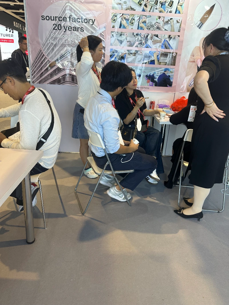 Yn ogystal â Brwshys Ewinedd Proffesiynol, bu Best Brush hefyd yn arddangos ei offer ewinedd diweddaraf, brwsys cosmetig, ac ategolion cysylltiedig, gan danlinellu ei arbenigedd dwfn mewn categori sy'n gofyn am weithgynhyrchu manwl gywir. Manteisiodd prynwyr a dosbarthwyr cyfanwerthu ar y cyfle i archwilio manylion y cynnyrch yn fanwl, gan gynnal trafodaethau manwl gyda'r tîm ar gyrchu deunyddiau, amseroedd arwain cynhyrchu, a meintiau archebion.