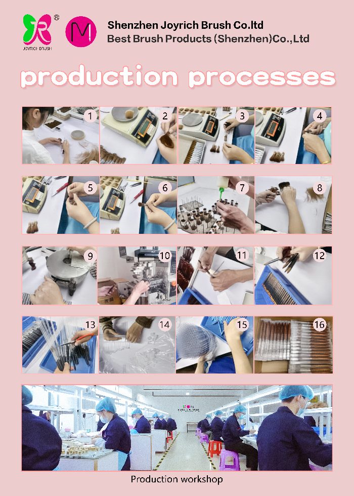 Rydym yn gweithredu gyda chyfleusterau cynhyrchu arbenigol, offer uwch, a thîm o grefftwyr profiadol. Rydym hefyd yn cynnig gwasanaethau wedi'u teilwra, gan gynnwys labelu preifat, meintiau brwsh arferol, a dyluniadau handlen.